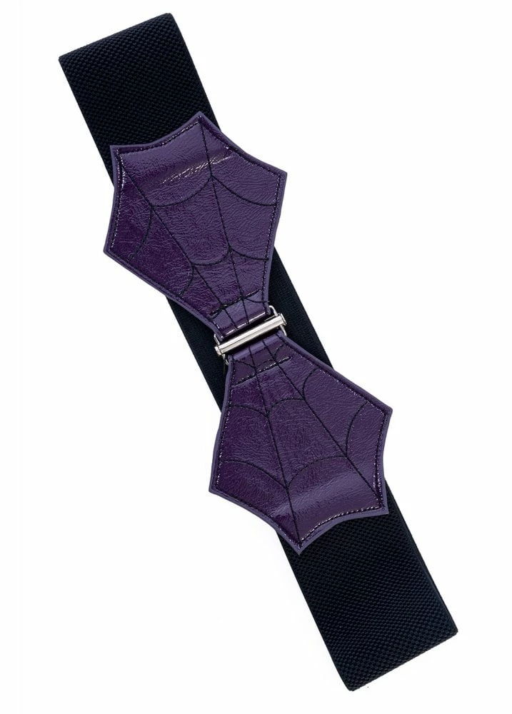 Finish off your look with Banned Apparel’s Tabitha Elasticated Belt. This elasticated waist belt has a fabulously spooky spiderweb batwing buckle front.
