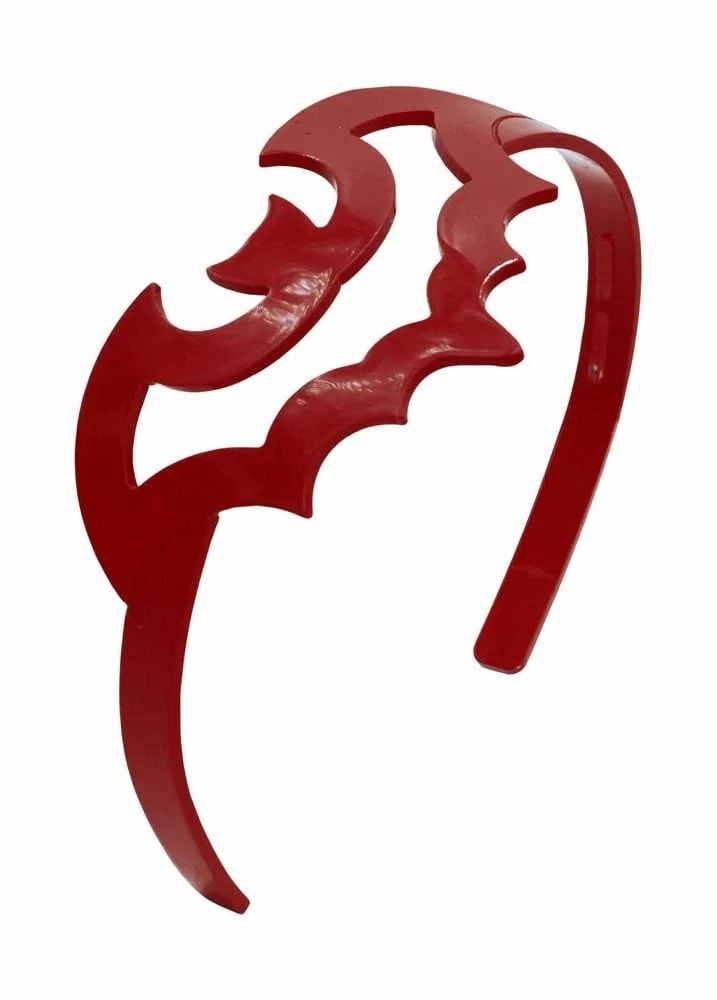 This gothic hairband from Kreepsville 666 is made from blood red plastic and features a cut-out bat outline. One size fits most.