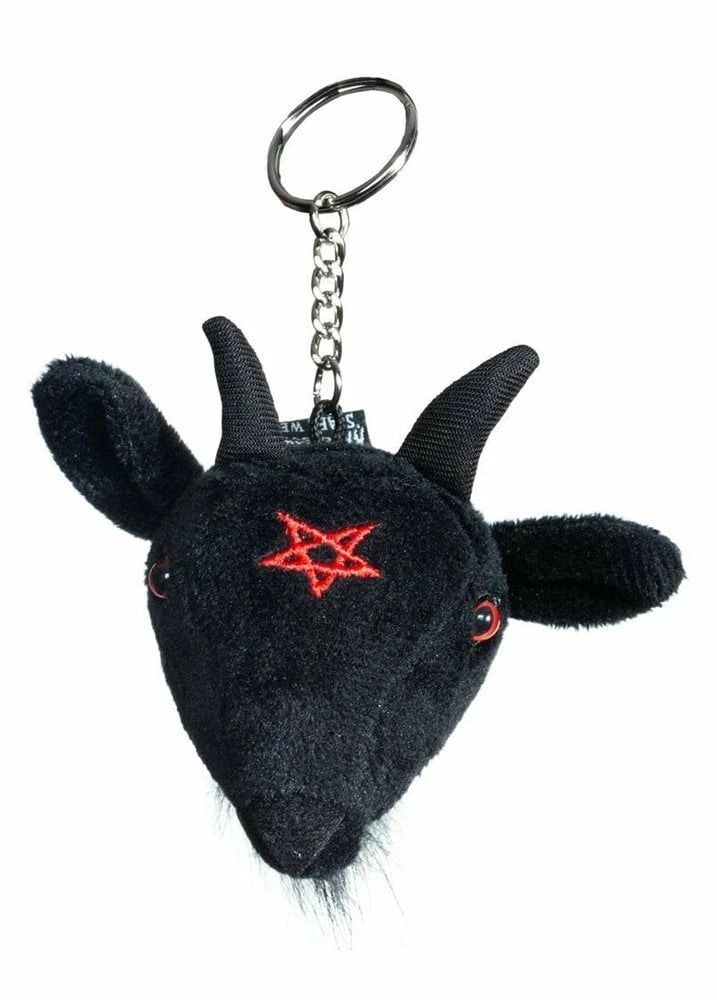 Get your goat on with the Goathead Baphomet Plush Keychain from Kreepsville 666!!! The keyring features a super cute mini plush with embroidered pentagram and demonic red bead eyes and will hang sweetly on your bag or keys.