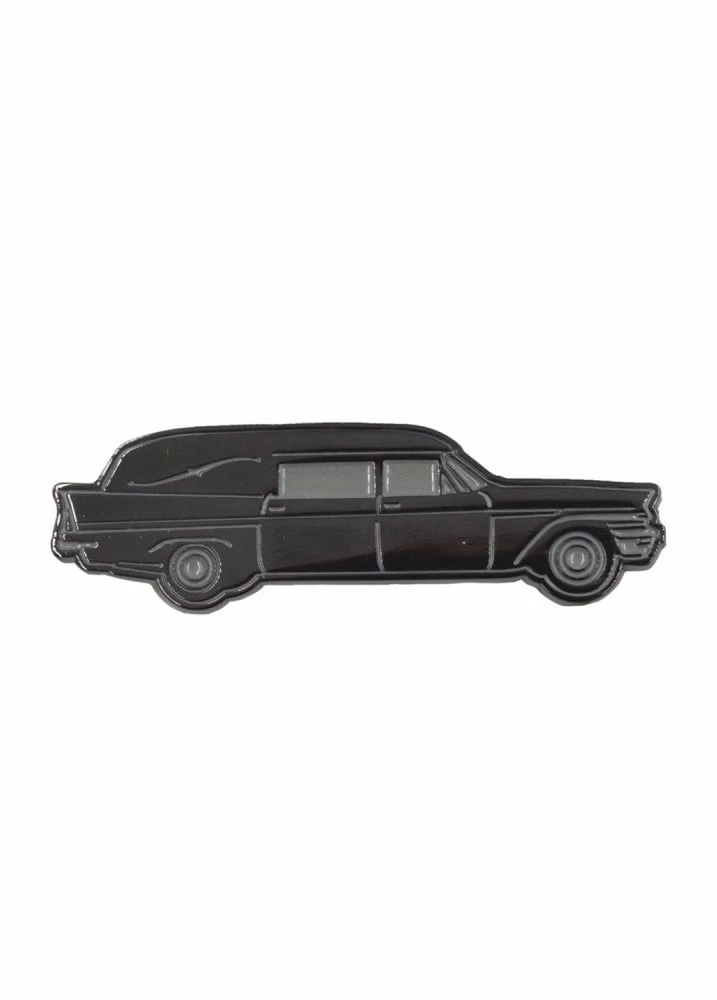 The Hearse Enamel Pin from Kreepsville 666 is a pin badge with black metal chrome finish. The perfect macabre accessory.