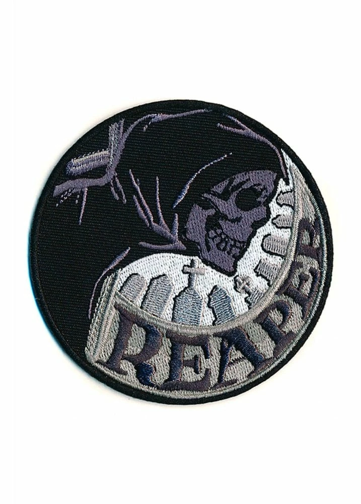 Kreepsville’s Reaper Circle Iron On Patch is a creepy patch that looks great on jackets or bags. The embroidered patch has a Grim Reaper design and iron-on back.