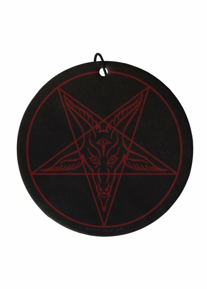 The Satanic Circle Air Freshener from Kreepsville 666 is an occult cinnamon scented air freshener. Hang the pentagram in your car for a burst or fragrance.