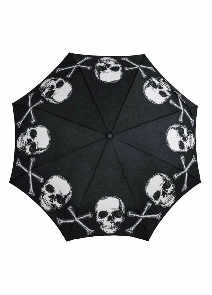 Introducing the Skull Handle Anatomical Bones Umbrella from Kreepsville! This stylish and unique umbrella is perfect for any day you need a little protection from the sun or rain! Made from high quality 100% polyester fabric it also features Kreepsville’s signature skull handle. Its automatic pop-open design allows the umbrella to be compact enough to fit your purse or bag. Includes a matching umbrella sleeve.