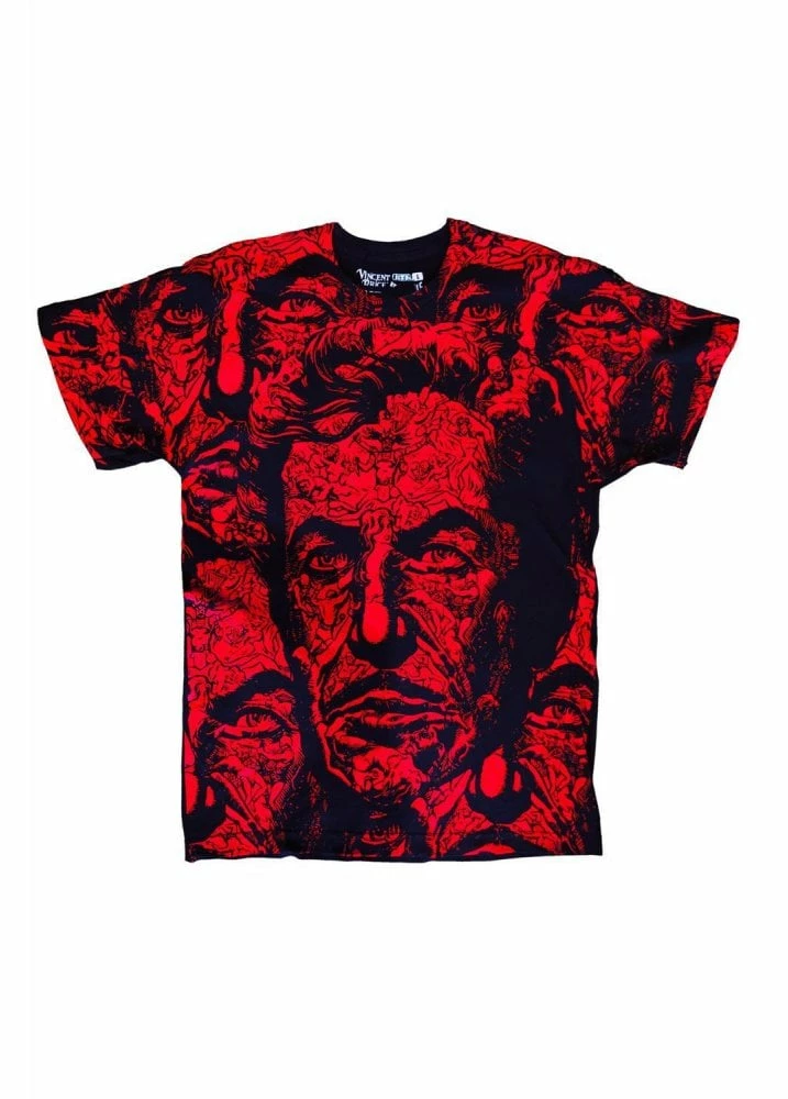 The Vincent Price Red Death T-Shirt from Kreepsville 666 is a striking red cotton tee. The top features and all over print from the movie The Masque of the Red Death.