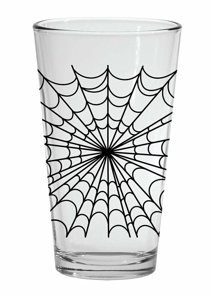 The Spiderweb Pint Glass from Sourpuss is perfect for cocktails or squash! The gothic glass holds a pint and features a spooky web design.