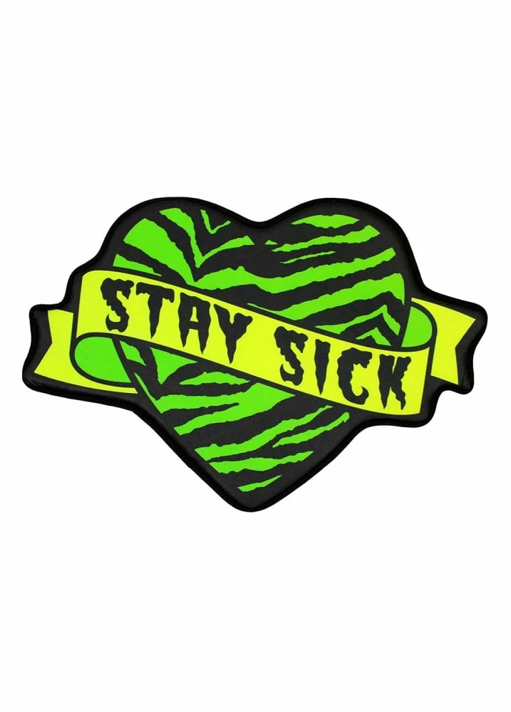 Add some colour to your bathroom with the Stay Sick Bath Mat from Sourpuss. The bath mat is a zebra print heart with ‘Stay Sick’ slogan scroll. This psychobilly home accessory has a non slip backing.